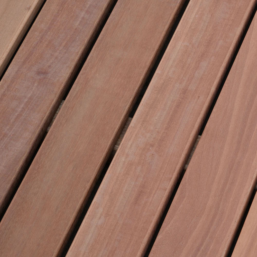 Mukulungu (familia Sapotaceae) es un modelo de tarima exterior de madera tropical en color marrón rojizo, veteada de marrón oscuro.